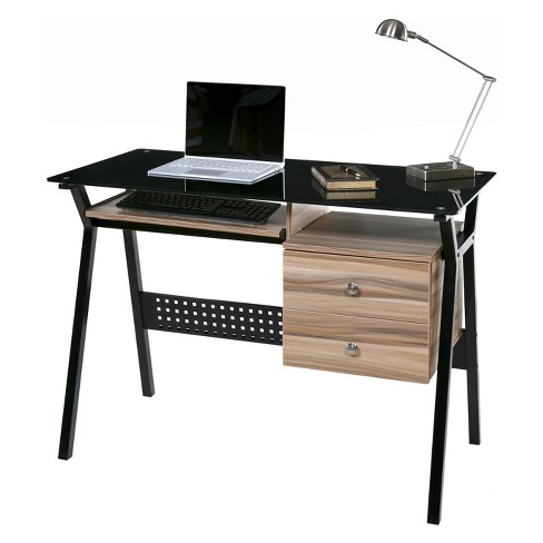 Glass And Wood Computer Desk With Pullout Keyboard Tray Black Onespace Target